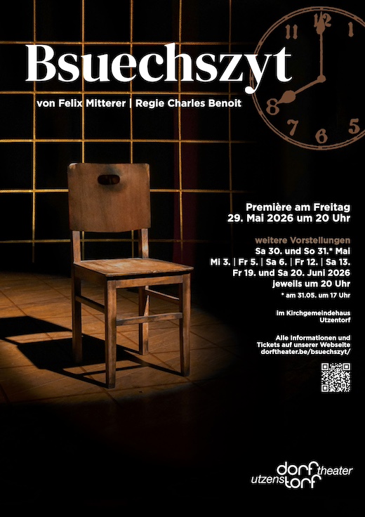 Wir spielen unsere Aufführungen im Reformierten Kirchgemeindehaus an der Gotthelfstrasse 15c in 3427 Utzenstorf. Utzenstorf liegt zwischen Burgdorf und Solothurn und ist sowohl mit den öffentlichen Verkerhsmitteln, wie auch mit dem Auto sehr gut erreichbar.